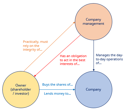 Owners (shareholders) of a business are not necessarily the managers of the business, and vice versa. The owners must therefore rely on the company management to act in a way that is good for the owners. In fact, the managers are obliged to do so.