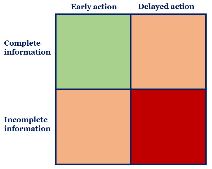 A trade-off that policymakers are constantly having to weigh is whether to act early – even when they don’t have all the information thy need, or wait for more complete information, but then act with a delayed response. This has always been true of policymaking, but it takes on a renewed meaning in the context of climate change and other sustainability-related issues.